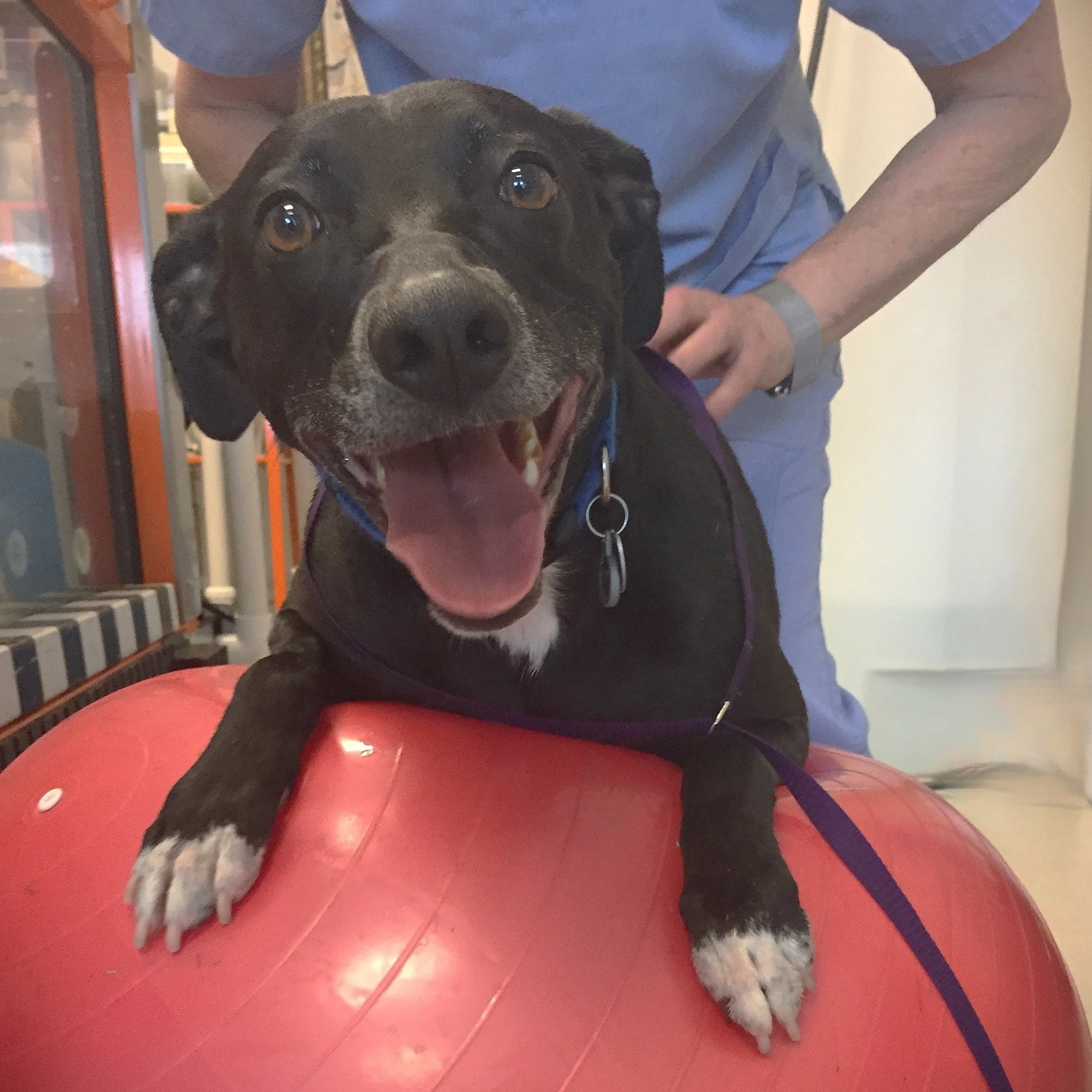 After surgery some dogs need help to use a leg that has given them problems for some time. Early gait training begins with initial weight bearing and balance. Advanced gait training increases stride length, range of motion and symmetry.